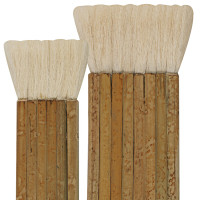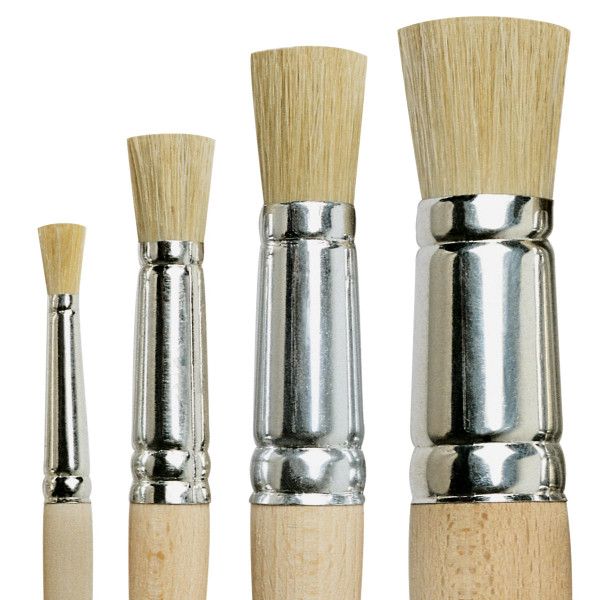Rundpinsel, weiße Borsten, Blechzwinge, naturbelassener, kurzer Stiel. Made in Germany.