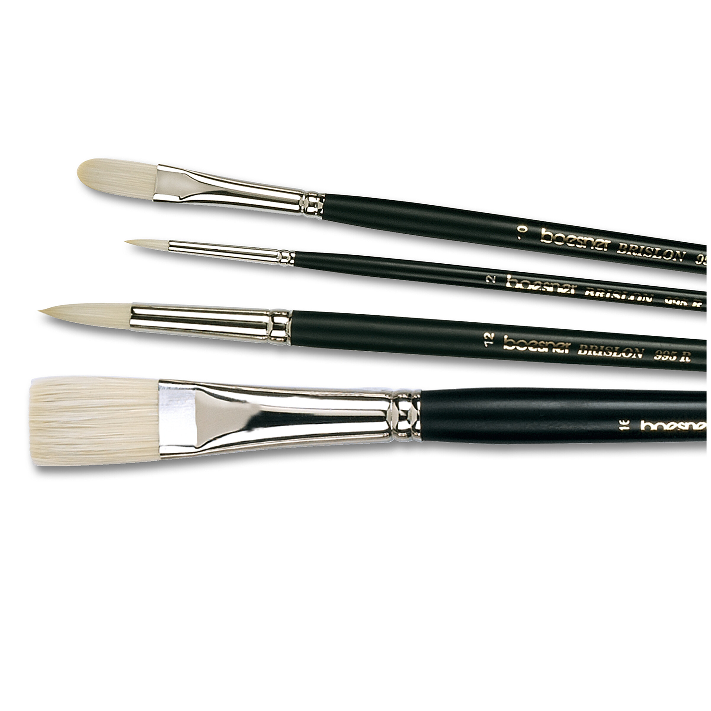 Brislon ist eine hochwertige synthetische Faser mit Fahne, die der Naturborste in Bezug auf Farbaufnahmefähigkeit, Auf-Schluss-Verhalten und Pinselstrich in nichts nachsteht. Der robuste Besatz wird in einer nahtlosen Silberzwinge gefasst. Die Pinsel mit langem, mattschwarzem Stiel eignen sich perfekt für die Öl- und Acrylmalerei. Made in Germany.