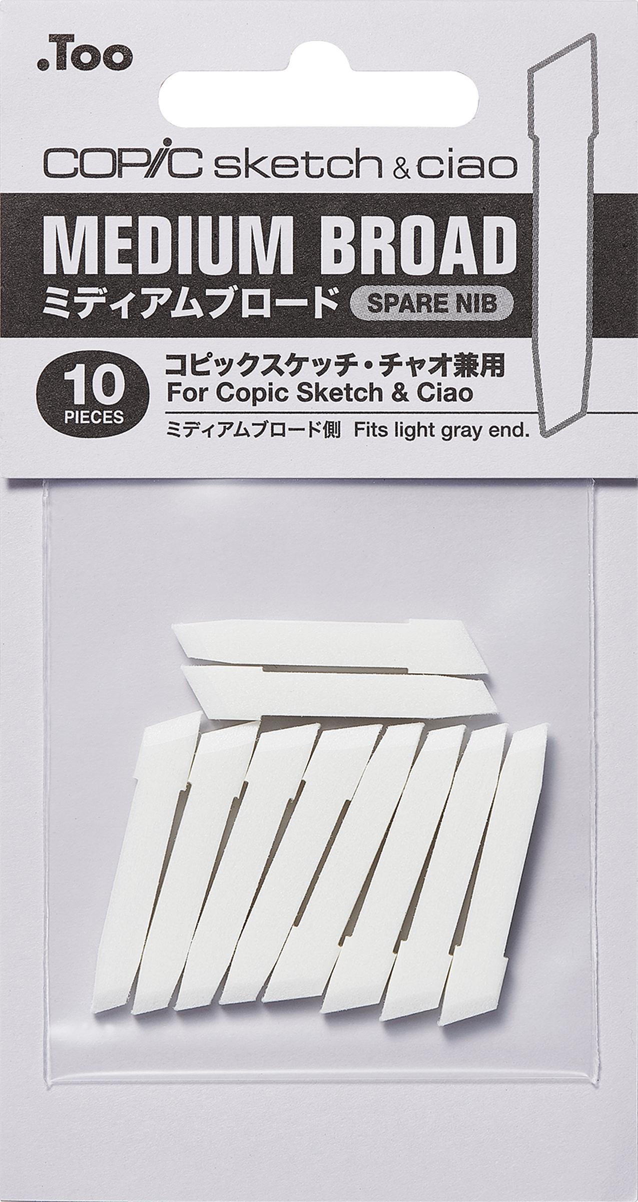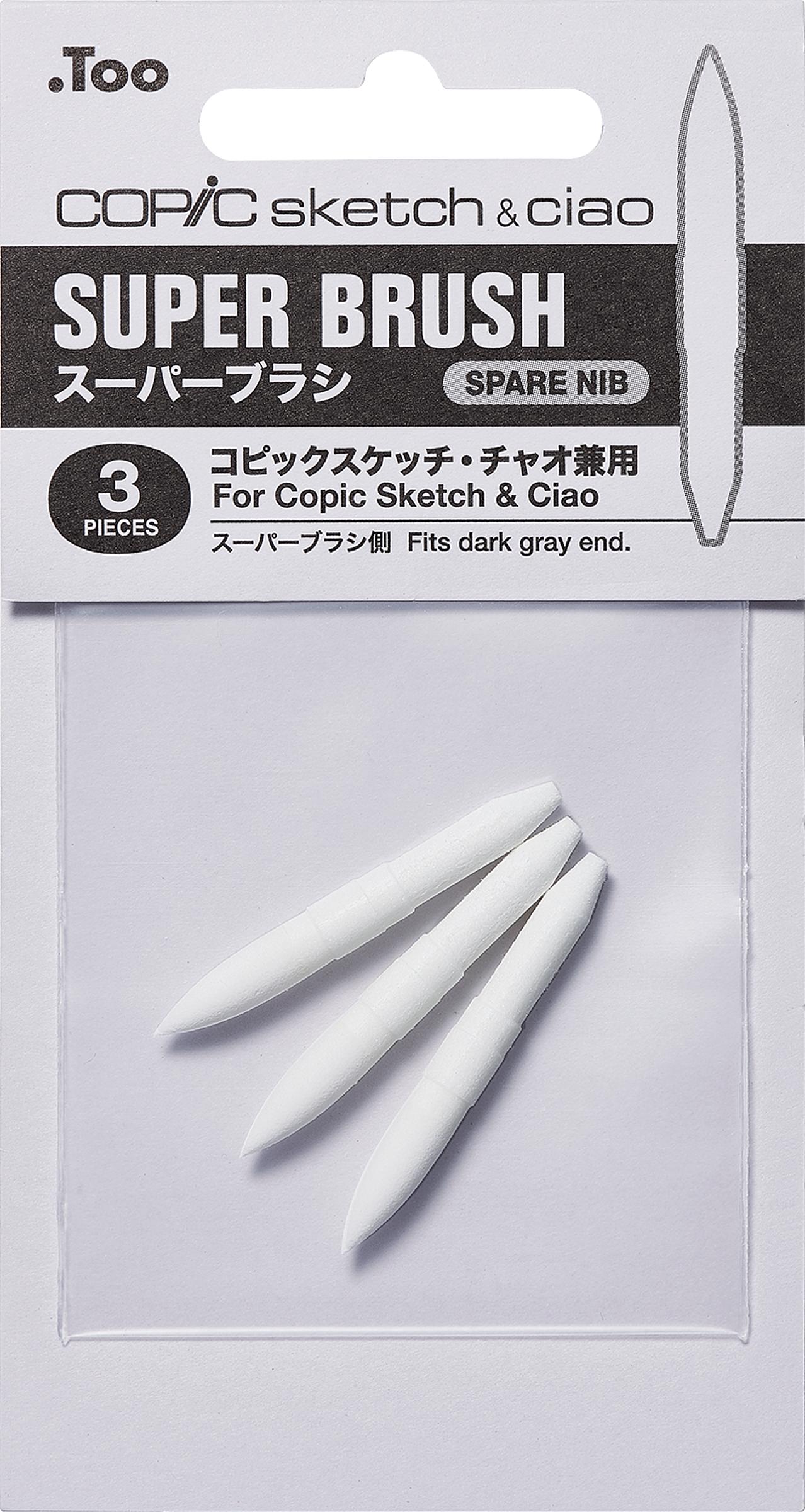 Ersatzspitzen für Copic Sketch und Ciao Marker in den Ausführungen Super Brush (Pinselspitze) und Medium Broad (halbbreit, abgeschrägt). Eine Pinzette speziell für den Wechsel der Spitzen ist separat erhältlich (Best.-Nr.: COPP).
