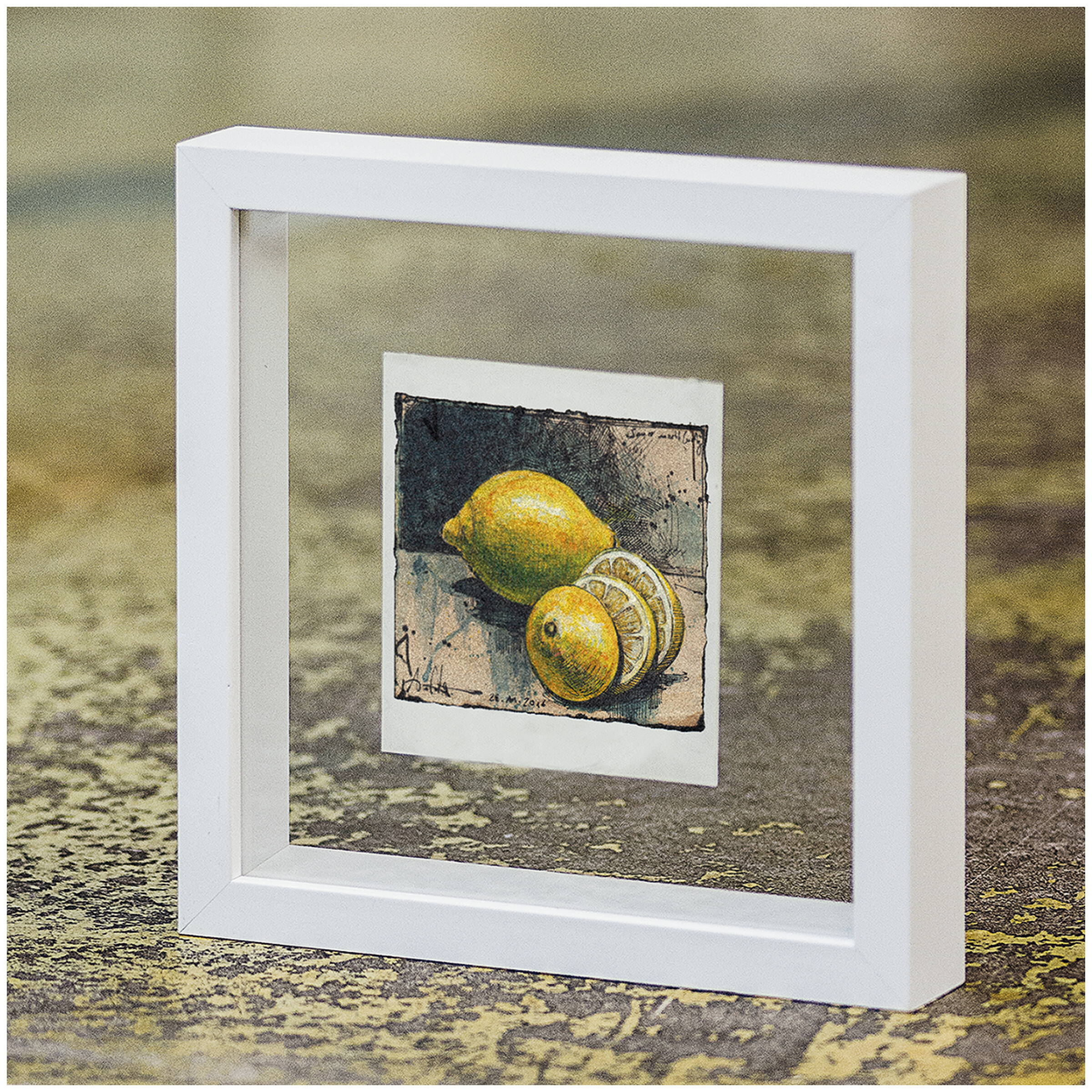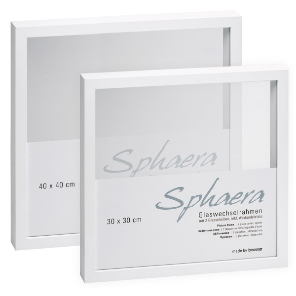 Bei Sphaera ist die Rückwand obsolet: Zwei Glasscheiben fixieren effektvoll das gerahmte Werk. Der Hintergrund bleibt sichtbar und wird so zum Teil der Einrahmung. Ein zurückhaltendes Rahmenprofil verstärkt den Eindruck der harmonischen...