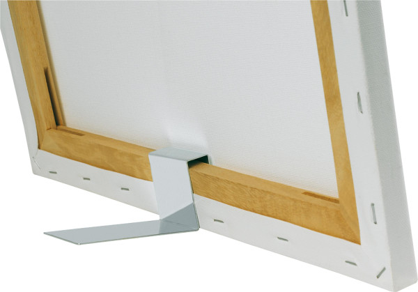 Keilrahmentischaufsteller aus Metall zur Präsentation. Für Keilrahmenleisten mit einer Tiefe von 1,8 cm.