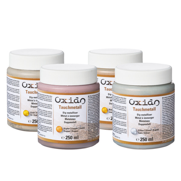 Hochpigmentiertes Tauchmetall für unterschiedlichste Materialien (Styropor, Kork, Kunststoff, Glas etc.). Zum Eintauchen oder zum Auftrag mit dem Pinsel geeignet. Um eine optimale Haftung zu garantieren, empfiehlt sich eine Grundierung...