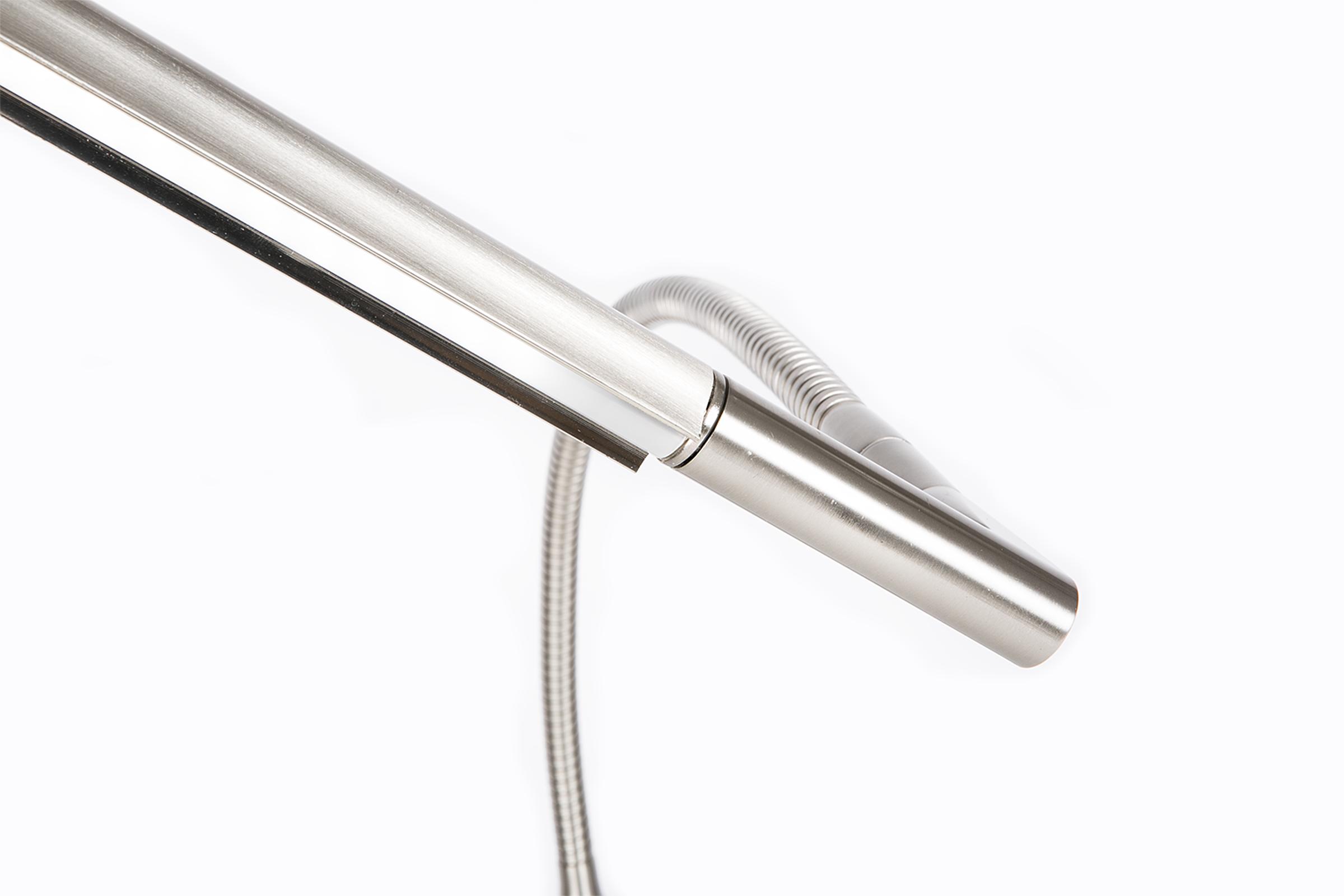 Die anspruchsvoll gestaltete Leuchte aus gebürstetem Stahl wurde speziell zur Montage an Staffeleien, Zeichentischen o. Ä. entwickelt. Die hellen daylight-LEDs sind in drei Helligkeitsstufen regulierbar und erlauben eine perfekte...