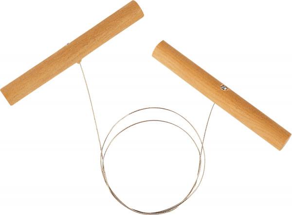 Aus nicht rostendem Edelstahl, mit zwei Holzknebelgriffen. Drahtlänge ca. 62 cm.