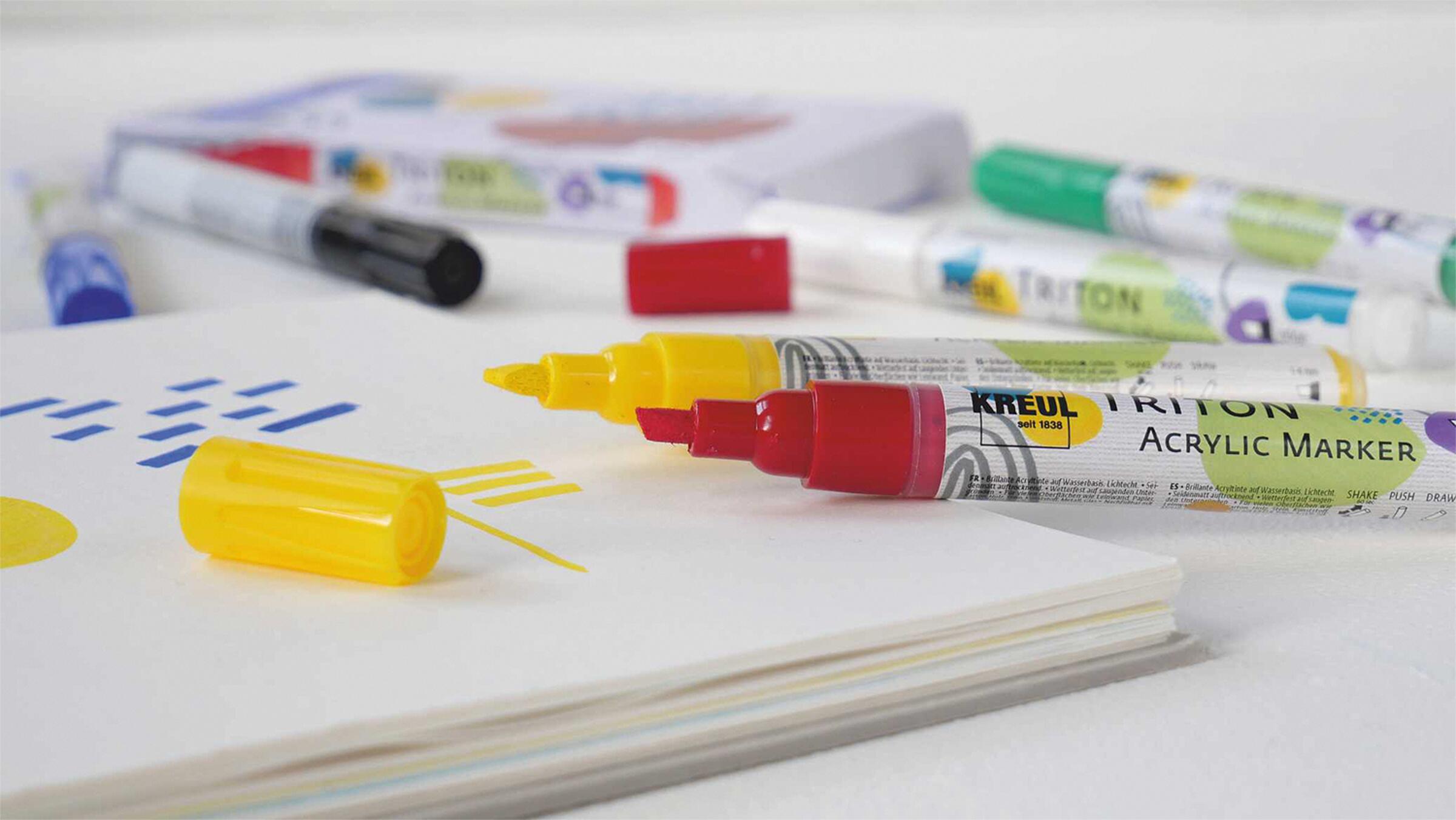 Marker mit brillanter, lichtechter Acryltinte auf Wasserbasis, geeignet zur Ausarbeitung von Details und flächigen Gestaltungen. Formstabile Spitzen in unterschiedlichen Strichstärken erlauben eine präzise Linienführung. Ein hochwertiges Ventilsystem gewährleistet darüber hinaus einen gleichmäßigen und exakten Farbfluss. Alle Farbtöne trocknen seidenmatt auf und sind koloristisch perfekt auf die Triton-Acrylfarbe abgestimmt.