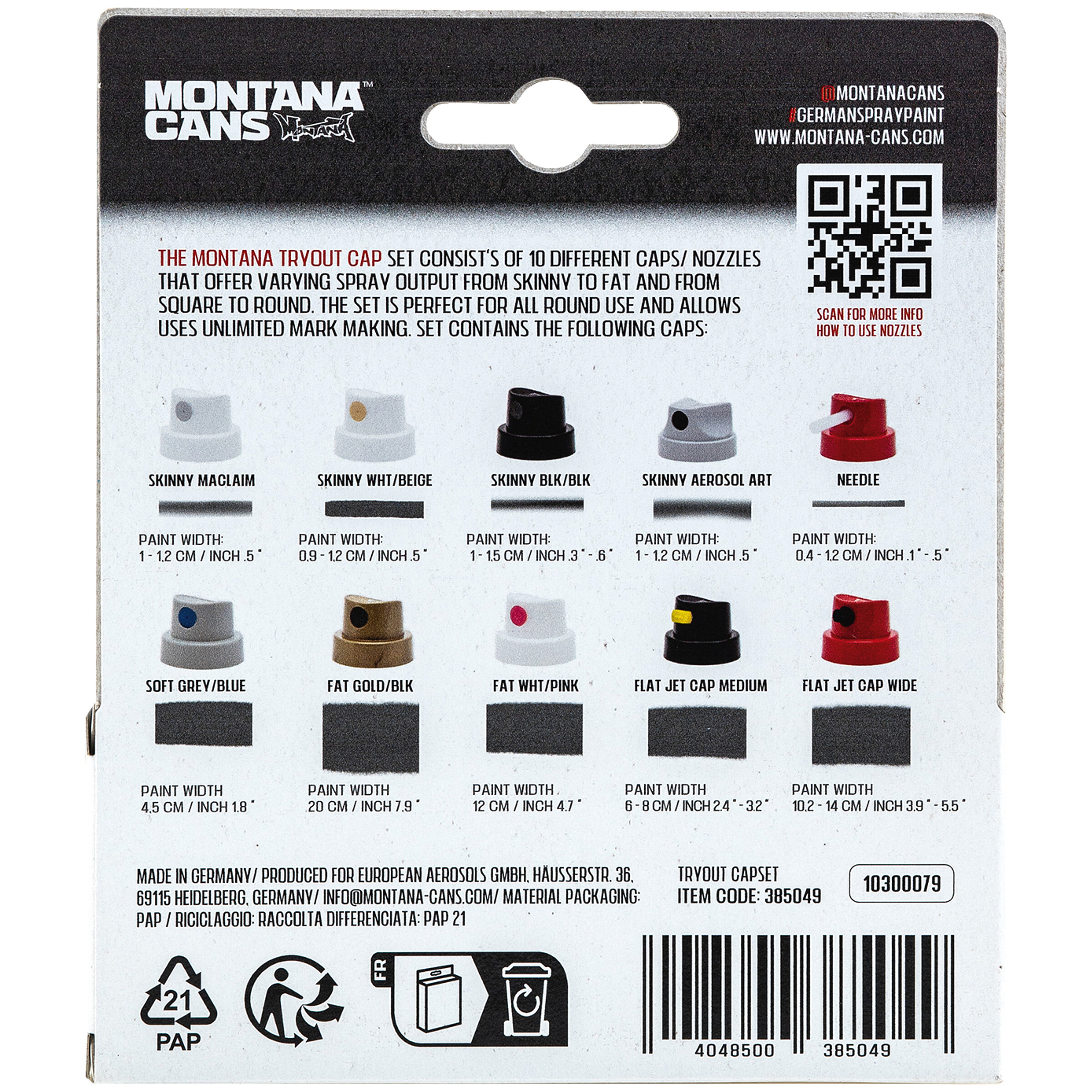 Das Cap-Set enthält zehn austauschbare Sprühköpfe in verschiedenen Varianten.