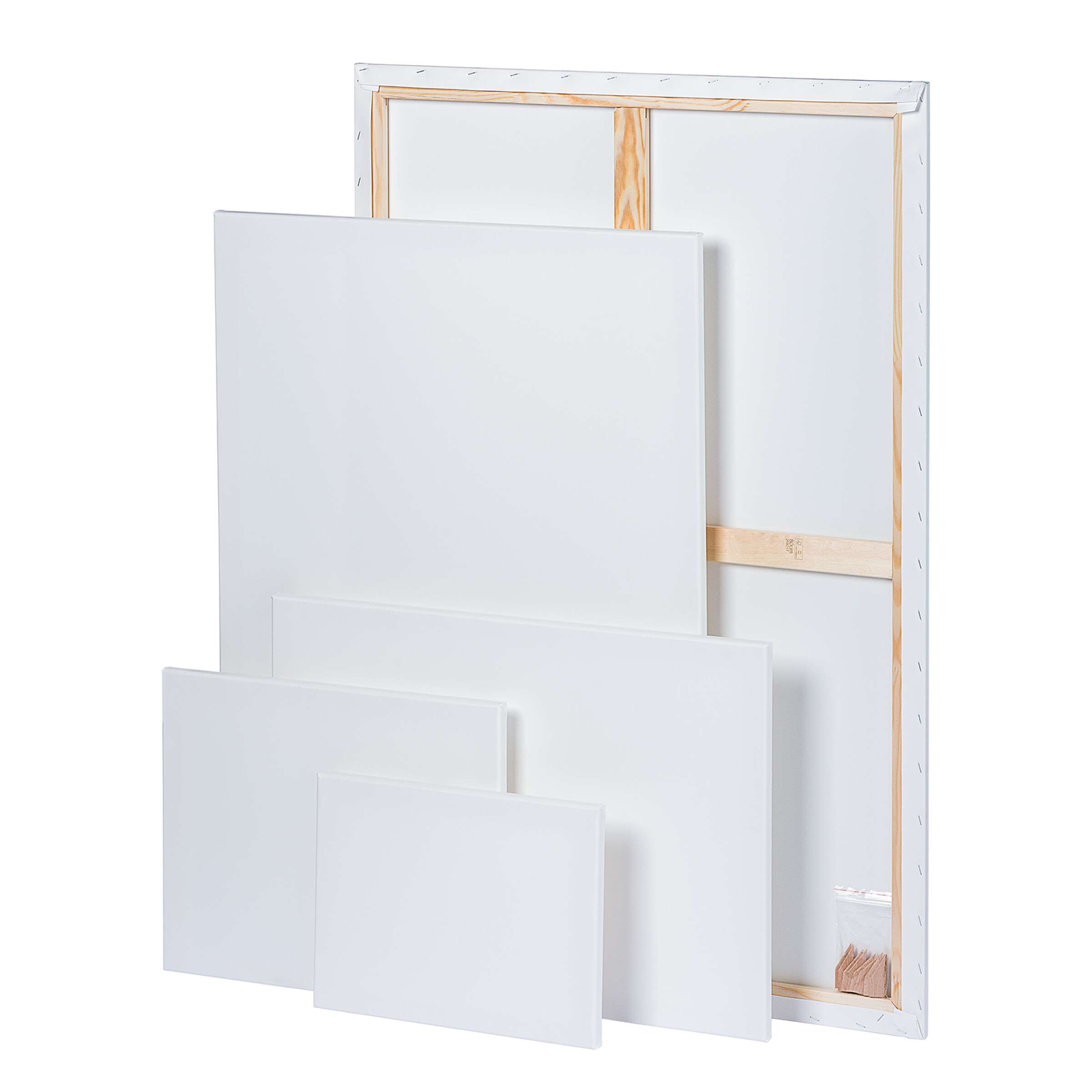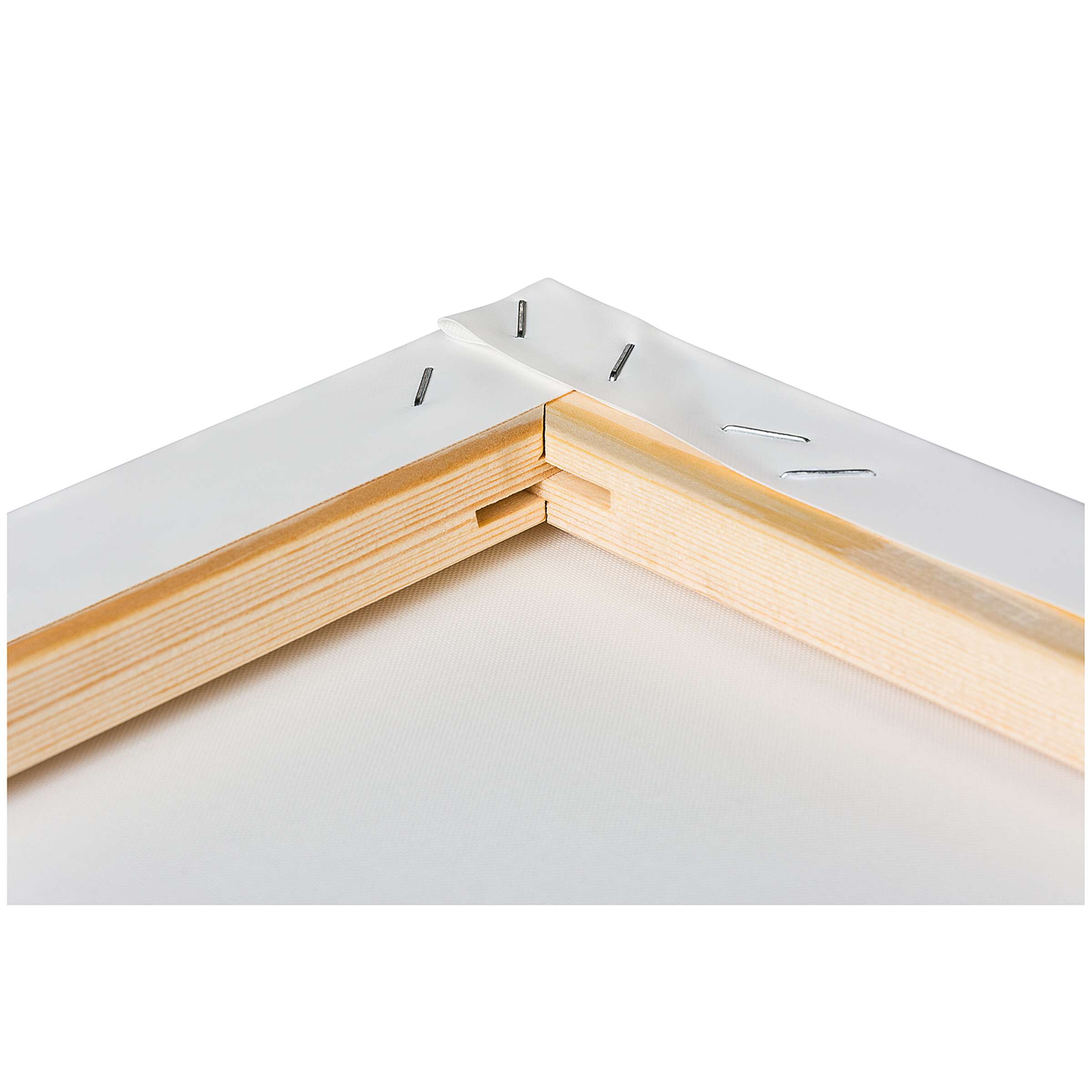 Der Keilrahmen aus abgelagertem, FSC-zertifiziertem Holz hat eine Bespannung aus glattem Universalgewebe mit minimalster Oberflächenstruktur, beschichtet mit reiner, weißer Acrylat-Grundierung. Das Gewebe aus 100 % Polyester eignet sich...