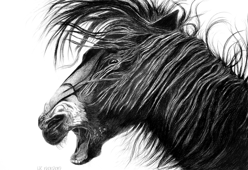98 % des Ergebnisses entstehen mit nur einem Kohlestift. Es entstehen Fell, Haut, Hörner, Geweihe, Panzer, Krallen oder Schuppen – jedes Detail wird lebendig.