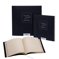 Spiral-Skizzenbuch mit 30 Blatt feinkörnigem 300 g/m²-Aquarellpapier. Das säurefreie, FSC®-zertifizierte Papier mit 25 % Baumwollanteil wurde für optimale Malergebnisse sowohl in der Masse als auch an der Oberfläche geleimt. Es eignet sich für Arbeiten mit Aquarellfarbe, Tusche, Tinte, Acryltinte, Kohle, Bleistift, Öl- und Softpastell, Faserstift und Fineliner. Ein Fensterausschnitt auf dem Cover des eleganten schwarzen Einbands ermöglicht eine Personalisierung des manufakturgefertigten Skizzenbuches.