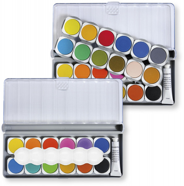 Der Winner Farbkasten ist perfekt geeignet für die Schule. Der transparente Deckel ist einfach abnehmbar und lässt sich somit einfach abwaschen. Der 12er-Farbkasten beinhaltet zusätzlich eine Mischpalette. Inklusive Deckweiß.