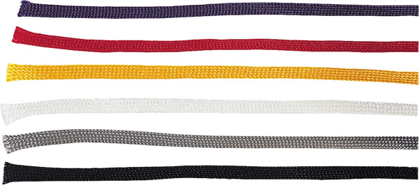 Aus Kunstseide gewebtes Band, welches in mehreren Arbeitsgängen gesponnen, gefärbt, gespult, gereinigt und „gekont“ (d.h. auf große, sich nach oben verjüngende Spulen gewickelt) wird. Band auf Karte gewickelt.